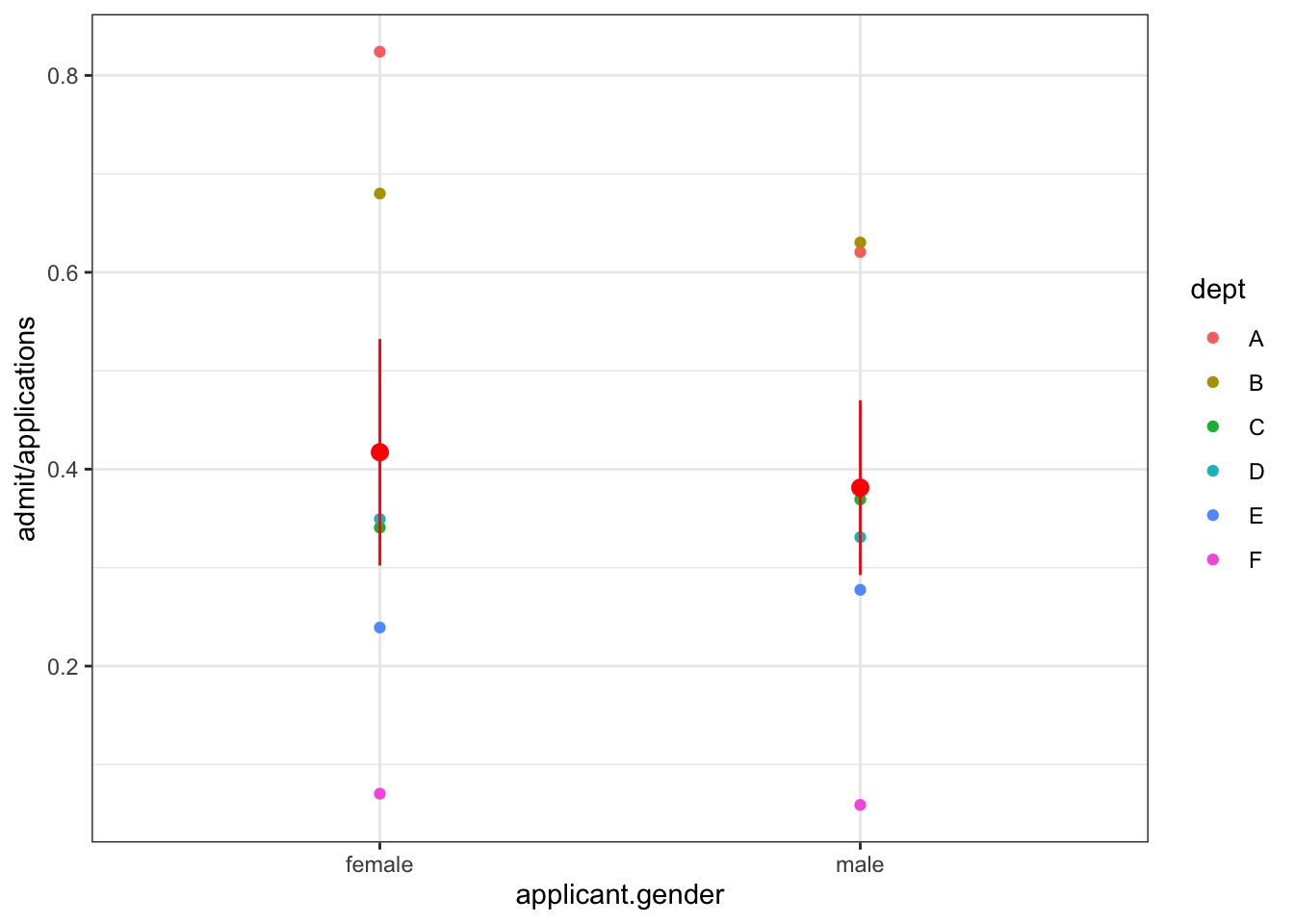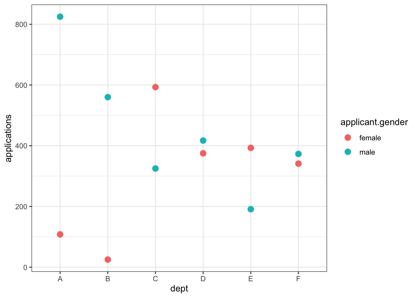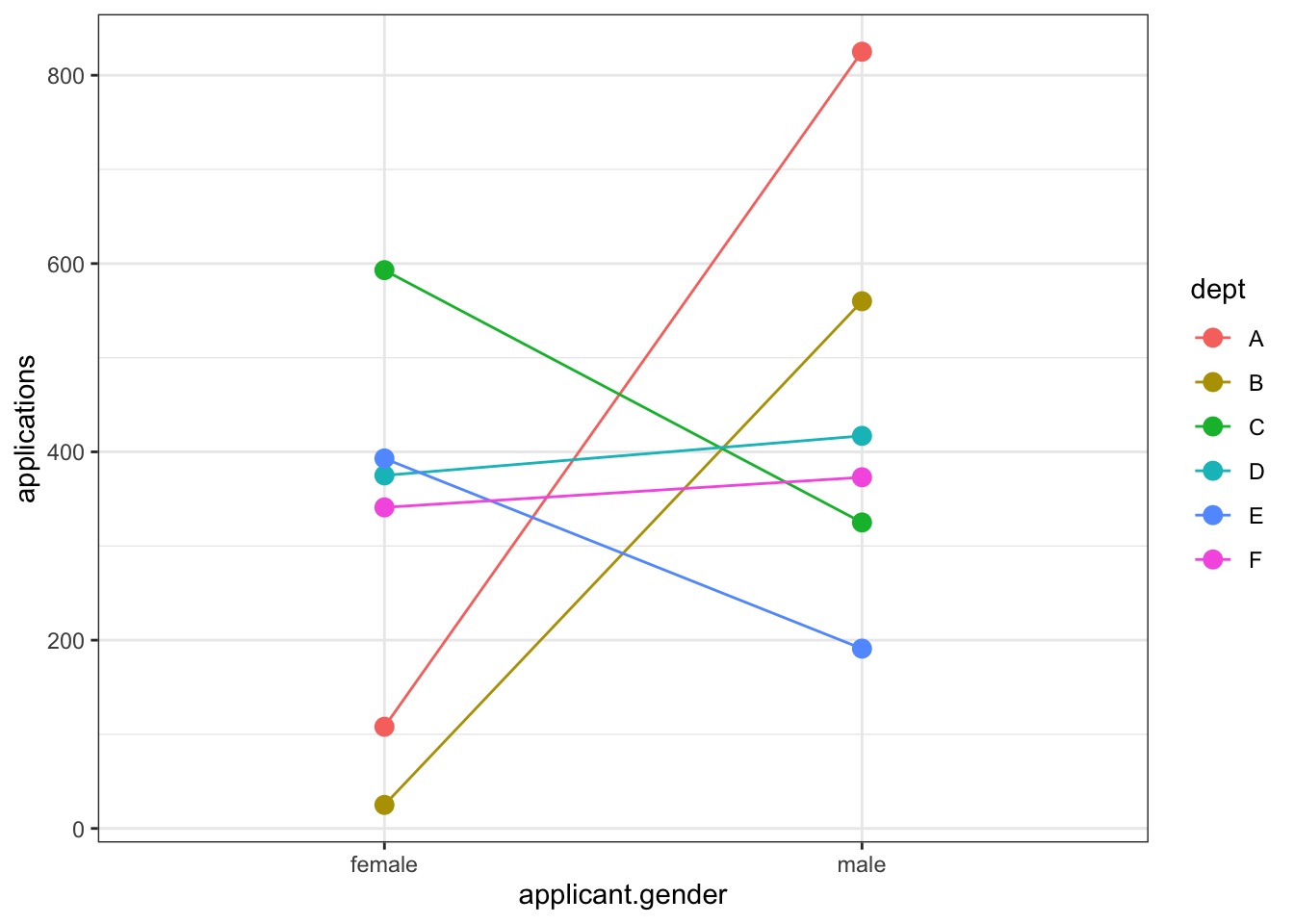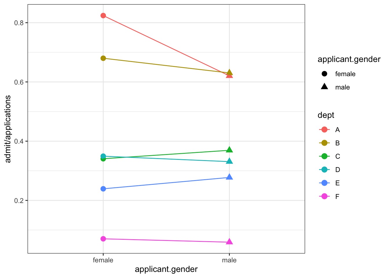 Gender influences where you apply to. Department mediates gender to admission relationship.