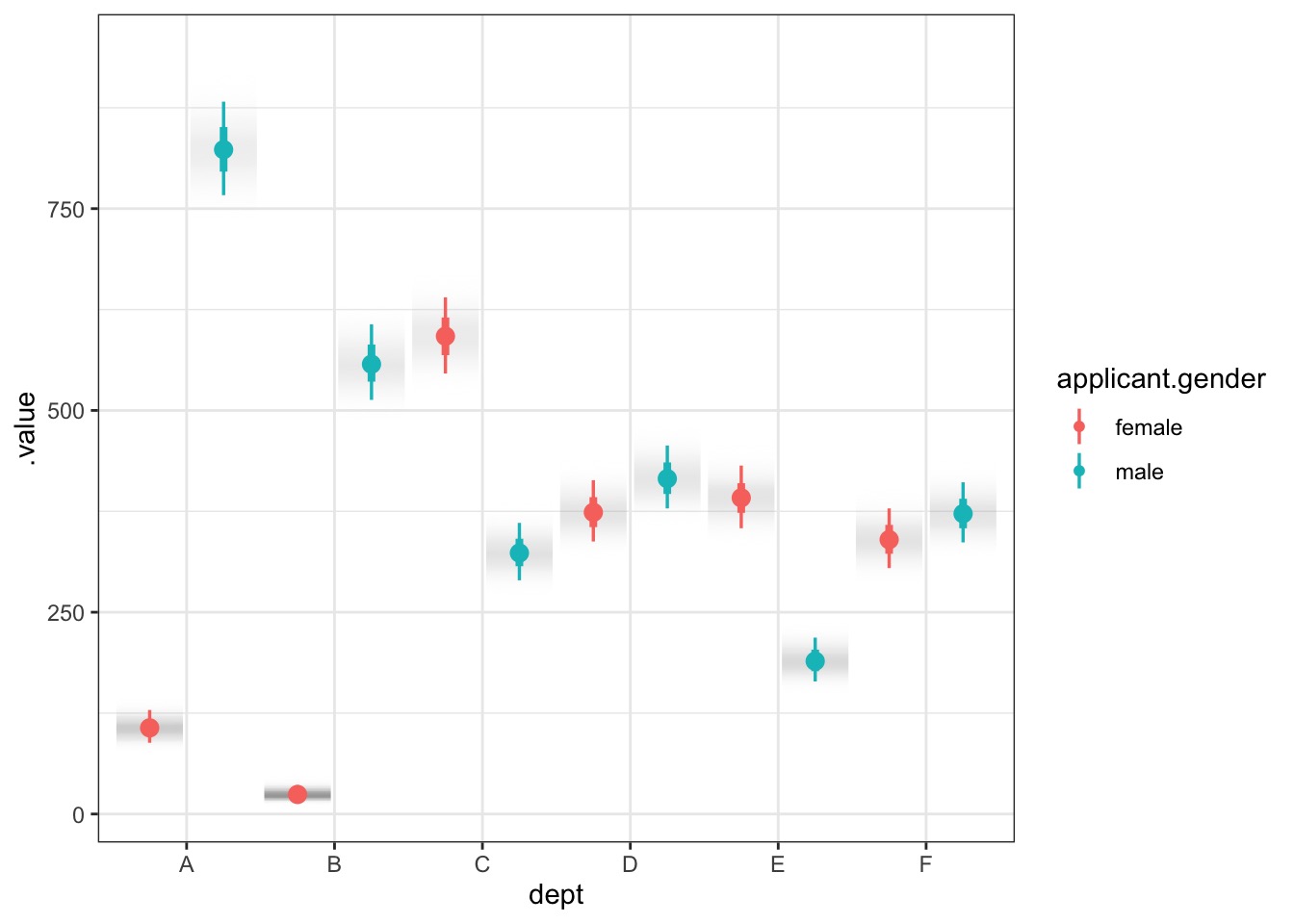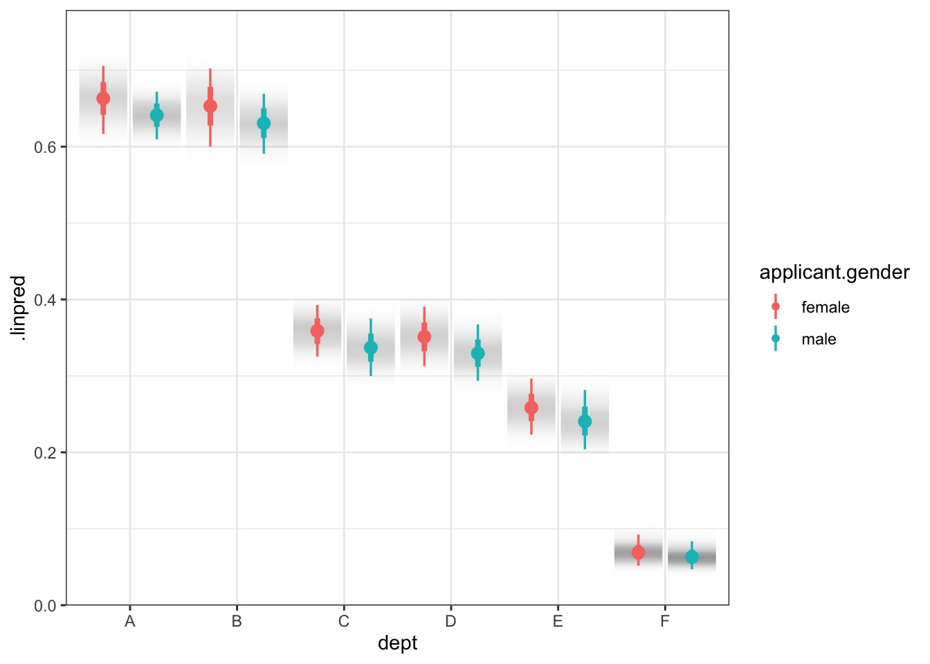 \(\alpha_{gender} \sim \mathcal{N}(0,1)\) \(\beta_{dept} \sim \mathcal{N}(0,1)\)