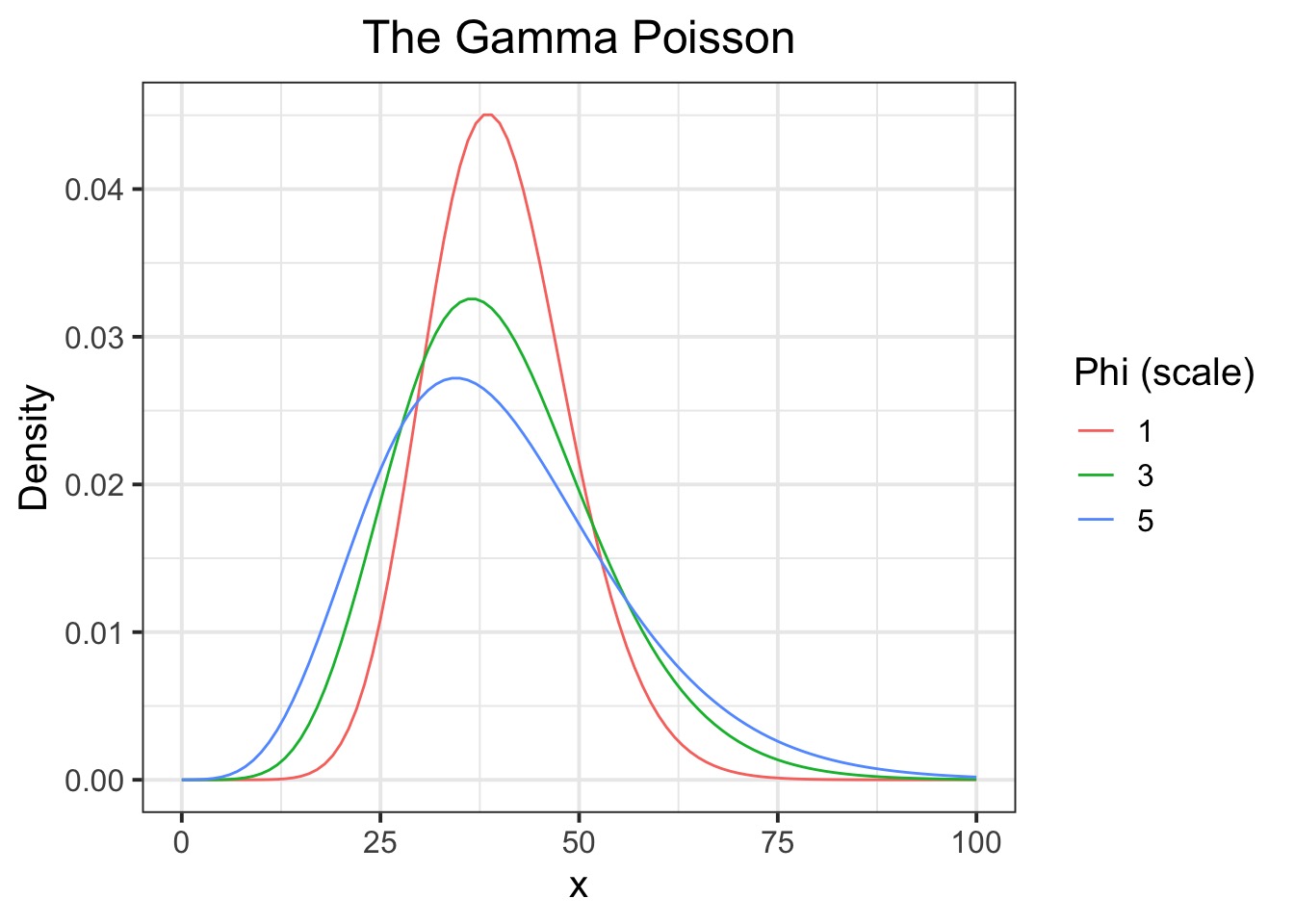 \[ Y \sim GammaPoisson(\lambda, \phi)\]